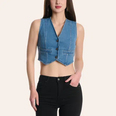 Women's Medium Wash Cropped Denim Vest In Blue