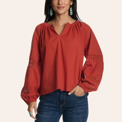Women's Rust Crocheted Long Sleeve Peasant Top In Brown