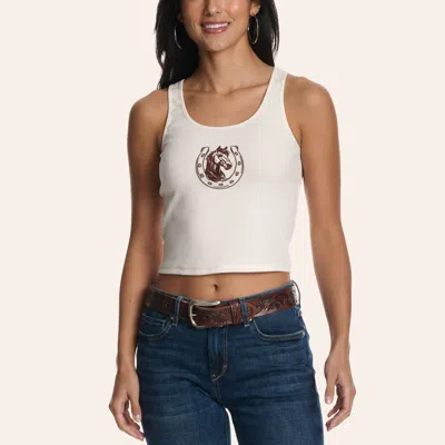 Women's White Horseshoe Graphic Cropped Tank Top