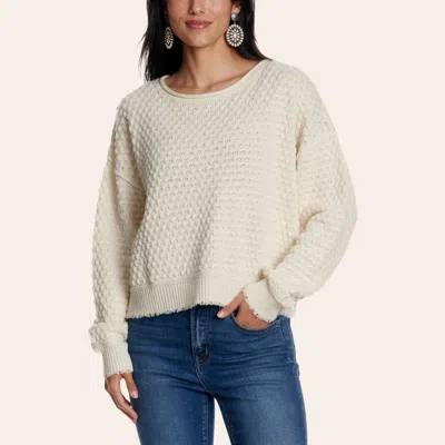 Women's Ivory Frayed Hem Knit Sweater In White