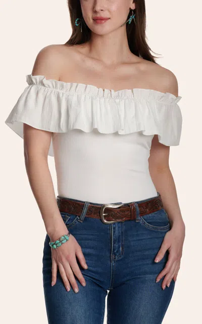 Women's White Off Shoulder Ruffled Neck Bodysuit
