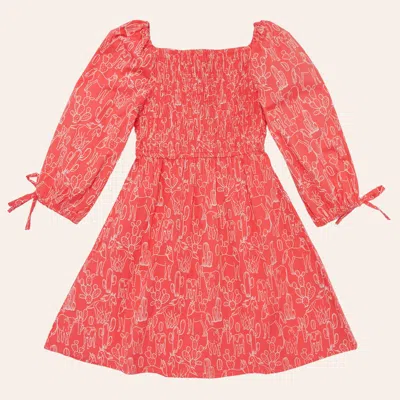 Girls' Coral Cactus & Horse Print Long Sleeve Dress In Red