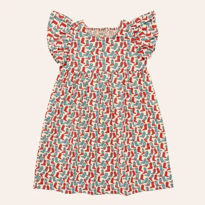 Girls' Multicolor Boot Print Flutter Sleeve Dress