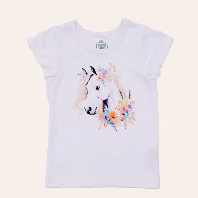 Girls' White Floral Horse Graphic T-shirt In Blue