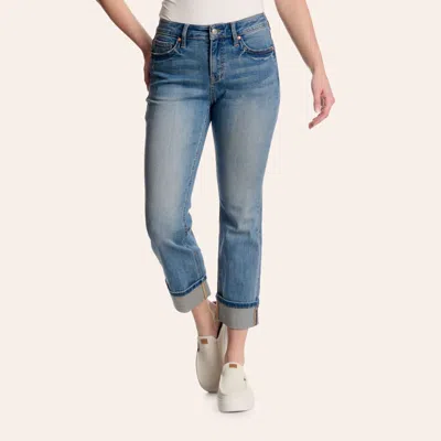 Women's Medium Wash Mid Rise Crop Cuff Straight Leg Jeans In Blue