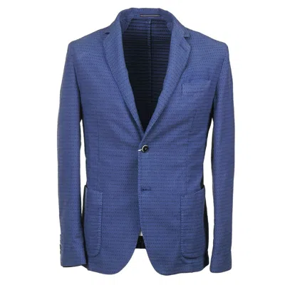 Pre-owned $950 Extra-slim Slate Blue Printed Cotton Sport Coat 42 (eu 52)