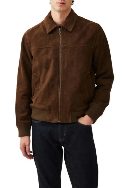 Redvale Sheepskin Suede Bomber Jacket In Brown