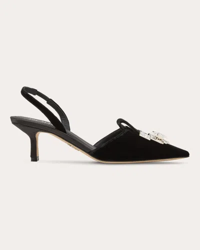 Women's Dafne 55 Crystal Embellished Velvet Slingback In Black