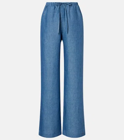 Blue Pants With Elastic Drawstring Waist And Wide Leg In Linen Woman