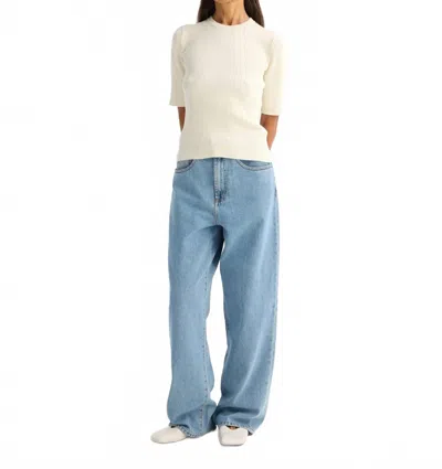 Ribbed Knit Round Neck Short Sleeve Top In Off White