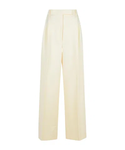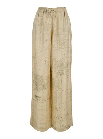 Beige Pants With Wide Leg And All-over Print In Silk Woman In White