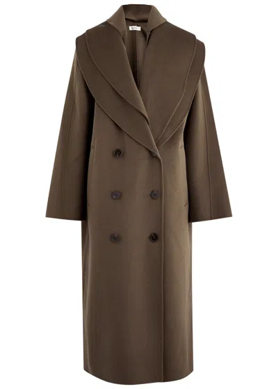 Double-breasted Scarf-detailed Layered Wool Coat In Brown