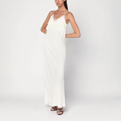 Tie-back Lace-trimmed Silk Maxi Dress In Cream