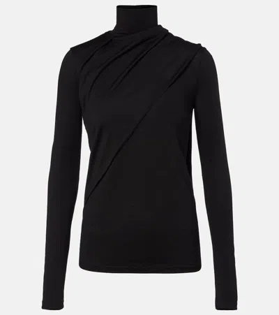 Asymmetric One-shoulder Gathered Woven Top In Black