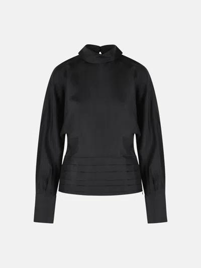 Binanco High Waist Pants With Lapel In Wool Blend In White