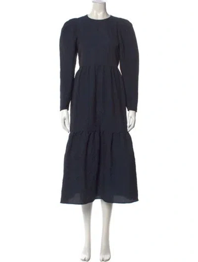 Pre-owned Crew Neck Long Dress In Blue