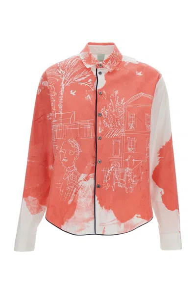 Abstract-print Double-pinstriped Shirt In Multi