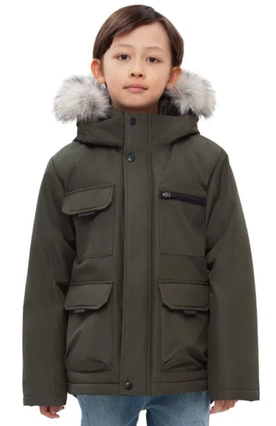 Kids' Parka Coat With Detachable Trim In Green