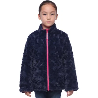 Kids' Reversible Fleece Puffer Jacket In Navy Rose Pink