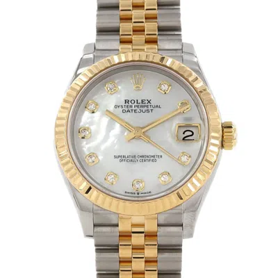 Pre-owned Datejust 178383-0020 White Mother Pearl Dial 18k Yellow Gold Stainless Steel Women's Wristwatch 31 M In Silver
