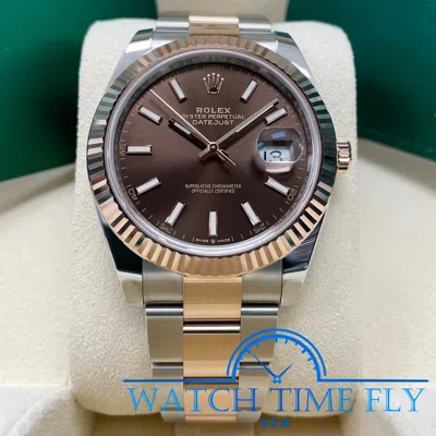 Pre-owned Datejust 41mm 126331 Two Tone Rose Gold Oyster Bracelet Chocolate Index