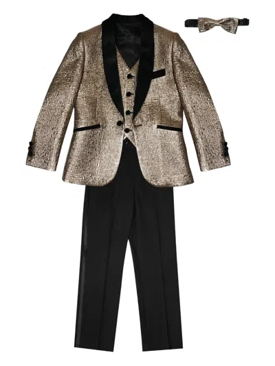 Kids' Contrasting-trim Suit (set Of Four) In Gold