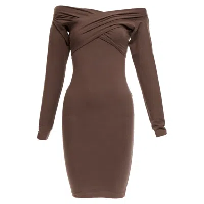 Cotton Criss Cross Shoulder Bodycon Dress In Brown