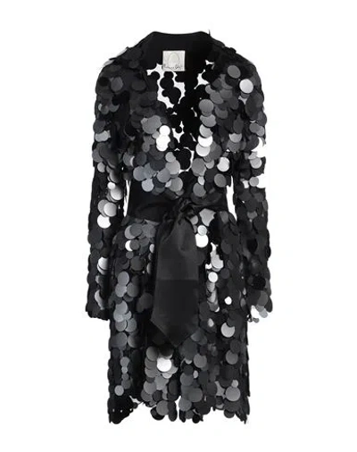 Woman Overcoat & Trench Coat Black Size 8 Silk, Pvc - Polyvinyl Chloride, Wool