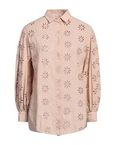 Woman Shirt Light Brown Size 6 Cotton In Beige