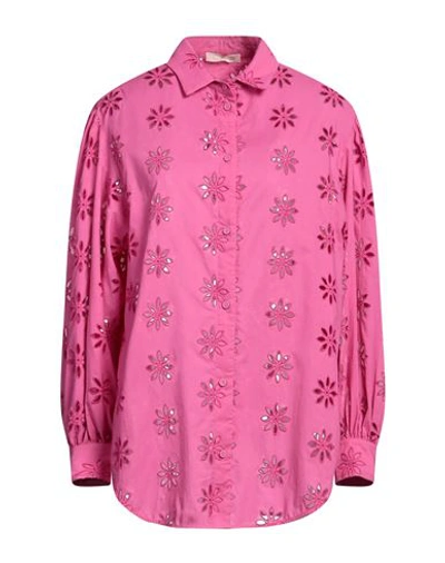 Woman Shirt Fuchsia Size 8 Cotton In Pink