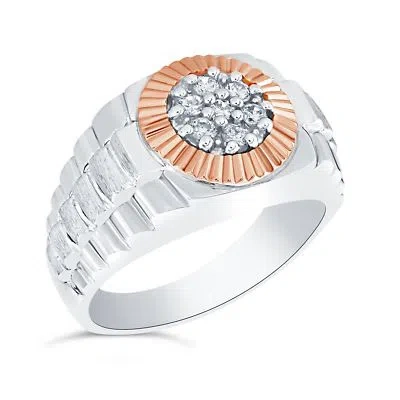 Pre-owned Sterling Silver/14 Karat Rose Gold 1/4 Ctw Diamond Men's Rlx Style Ring
