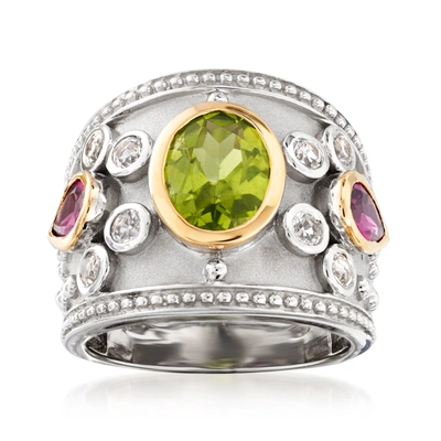 Multi-gemstone Ring In Sterling Silver And 14kt Yellow Gold In Green