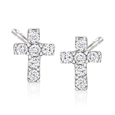 Diamond Cross Earrings In 14kt White Gold In Silver