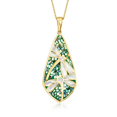 Mother-of-pearl And Abalone Shell Dragonfly Pendant Necklace In 18kt Gold Over Sterling In Green