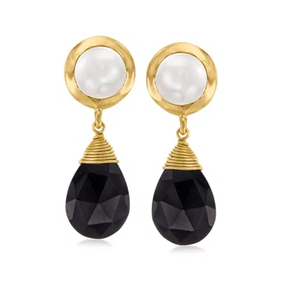 7.5-8mm Cultured Pearl And Black Onyx Drop Earrings In 18kt Gold Over Sterling
