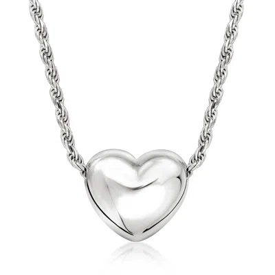 Italian Sterling Silver Puffed Heart Necklace In Multi