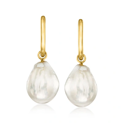 18kt Gold Over Sterling Hoop Earrings With Removable 11-12mm Cultured Baroque Pearl Drops In Yellow