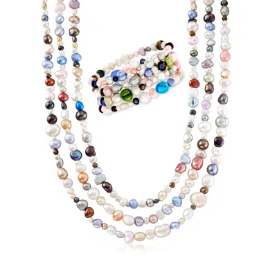4-8mm Multicolored Cultured Pearl Jewelry Set: 4 Bracelets And Necklace