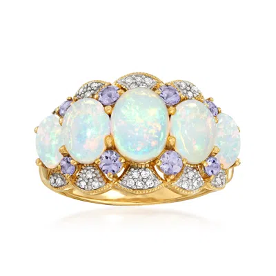Ethiopian Opal And Tanzanite Ring With Diamonds In 14kt Yellow Gold In White