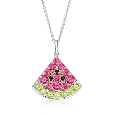 Multi-gemstone Watermelon Pendant Necklace In Sterling Silver And 18kt Rose Gold Over Sterling