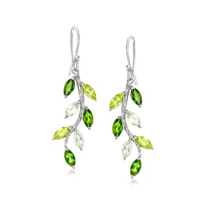 Multi-gemstone Vine Drop Earrings In Sterling Silver In Green