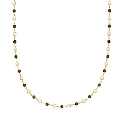 Bezel-set Onyx And 3.5-4mm Cultured Pearl Necklace In 18kt Gold Over Sterling In Black
