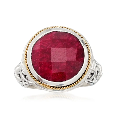 Balinese Ruby Ring In 18kt Yellow Gold And Sterling Silver In Red