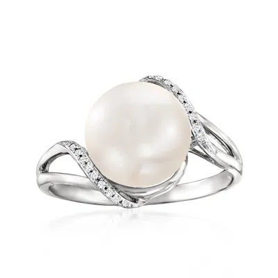 10-10.5mm Cultured Pearl Wave Ring With Diamonds In 14kt White Gold
