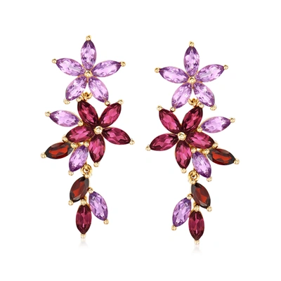 Multi-gemstone Floral Drop Earrings In 18kt Gold Over Sterling In Purple