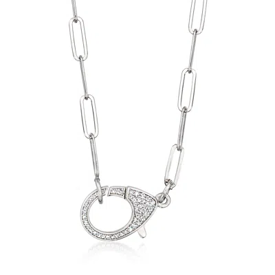 Italian Cz Oversized Lobster Clasp And Paper Clip Link Necklace In Sterling Silver In Multi