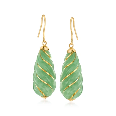 Carved Jade Teardrop Earrings In 18kt Gold Over Sterling In Green