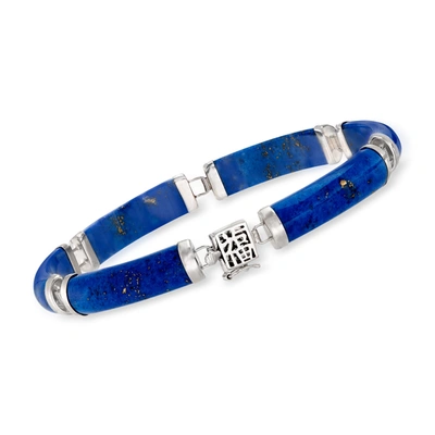 Lapis And 14kt Yellow Gold "good Fortune" Chinese Character Bracelet In Blue