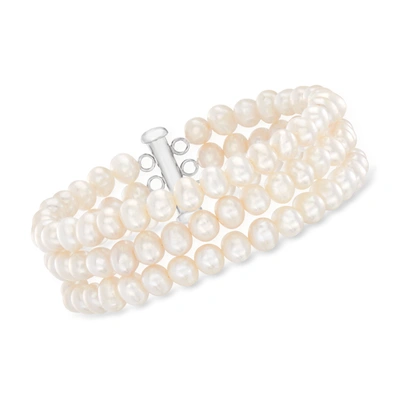 5.5-6.5mm Cultured Pearl Triple-strand Bracelet With Sterling Silver In White