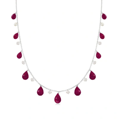 Ruby And Cultured Pearl Drop Necklace In Sterling Silver